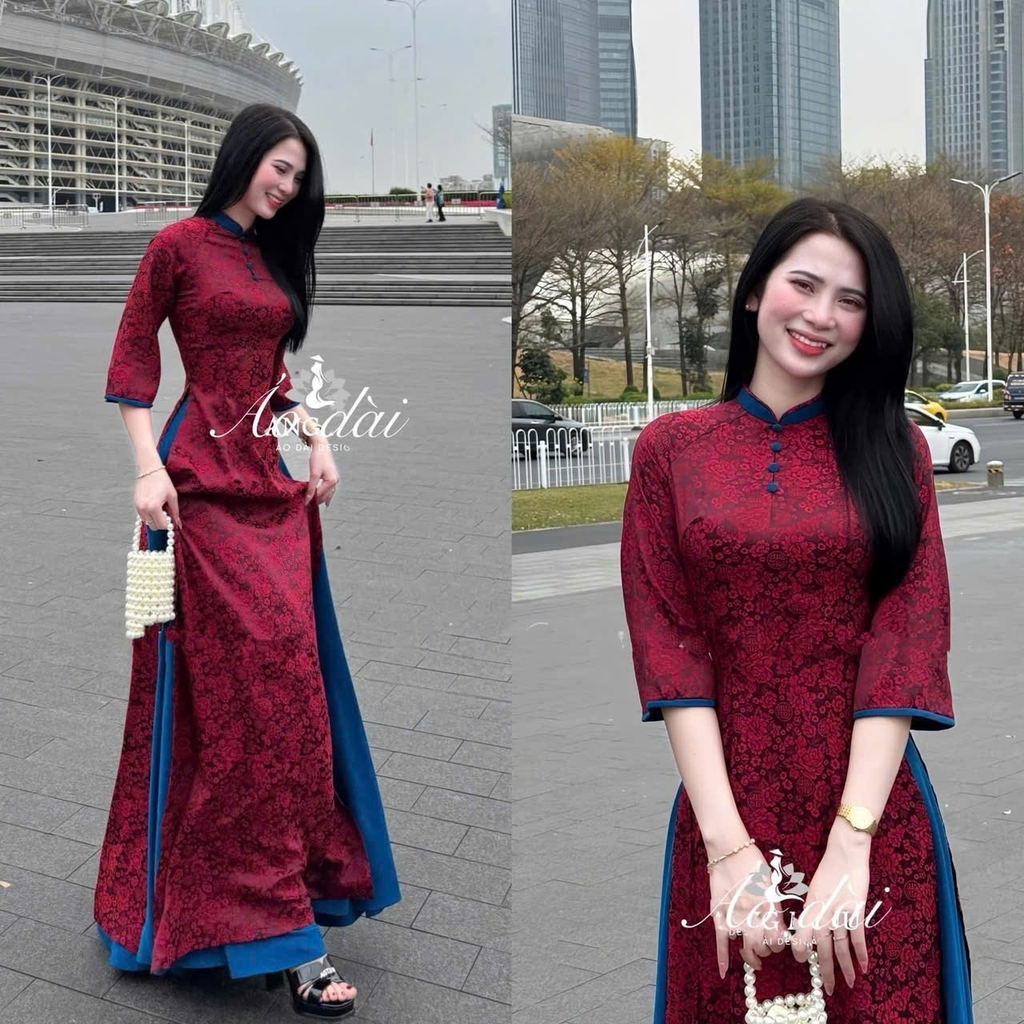 Đánh giá SET753- Bộ áo dài truyền thống gấm lụa xanh đỏ cúc tàu