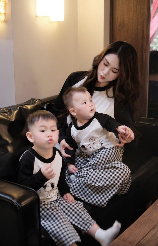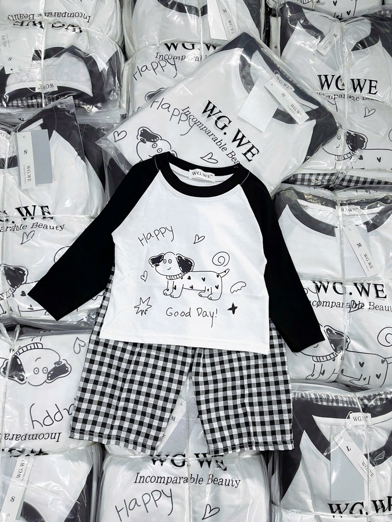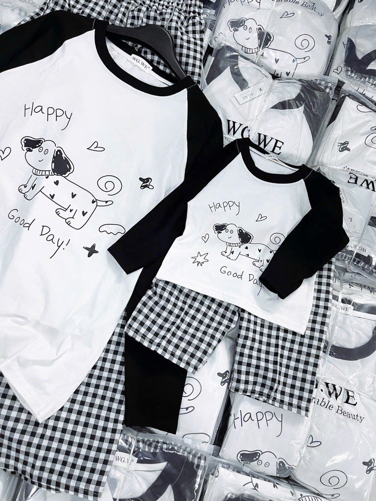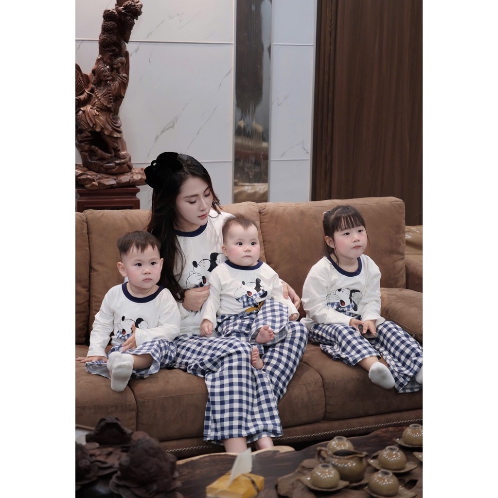 Đánh giá SET771- Bộ mặc nhà gia đình áo thun quần kẻ suông dài đen trắng