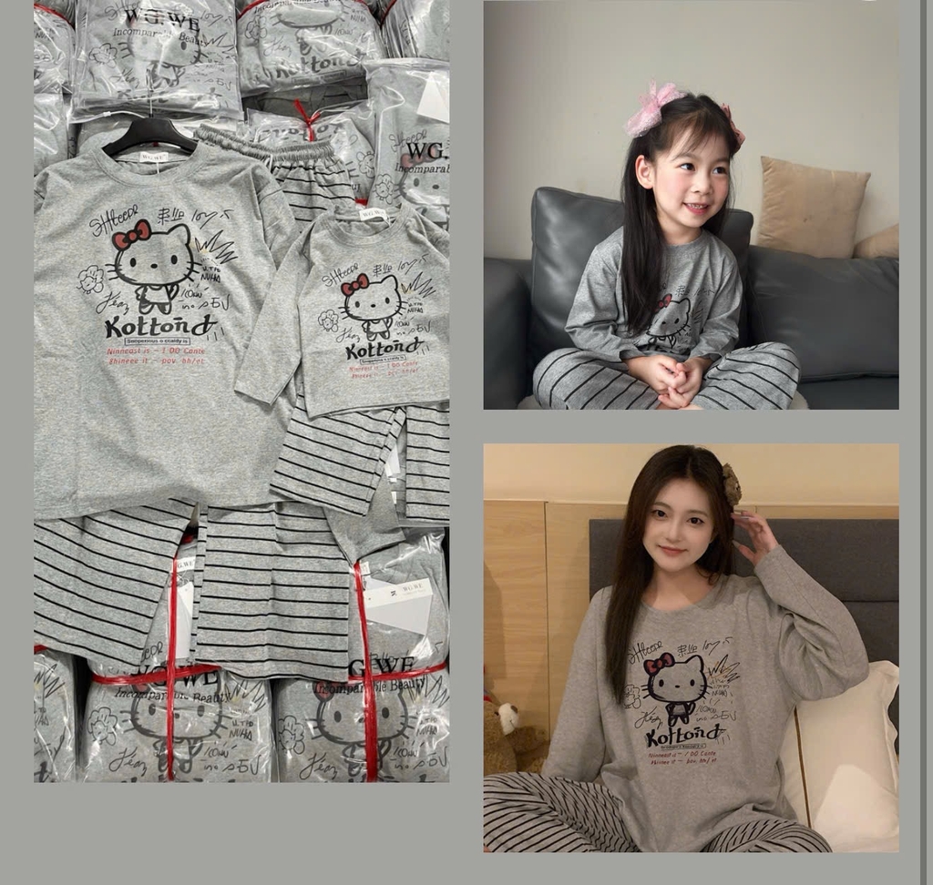 Đánh giá SET780- Bộ mặc nhà gia đình áo thun quần kẻ suông xám đậm