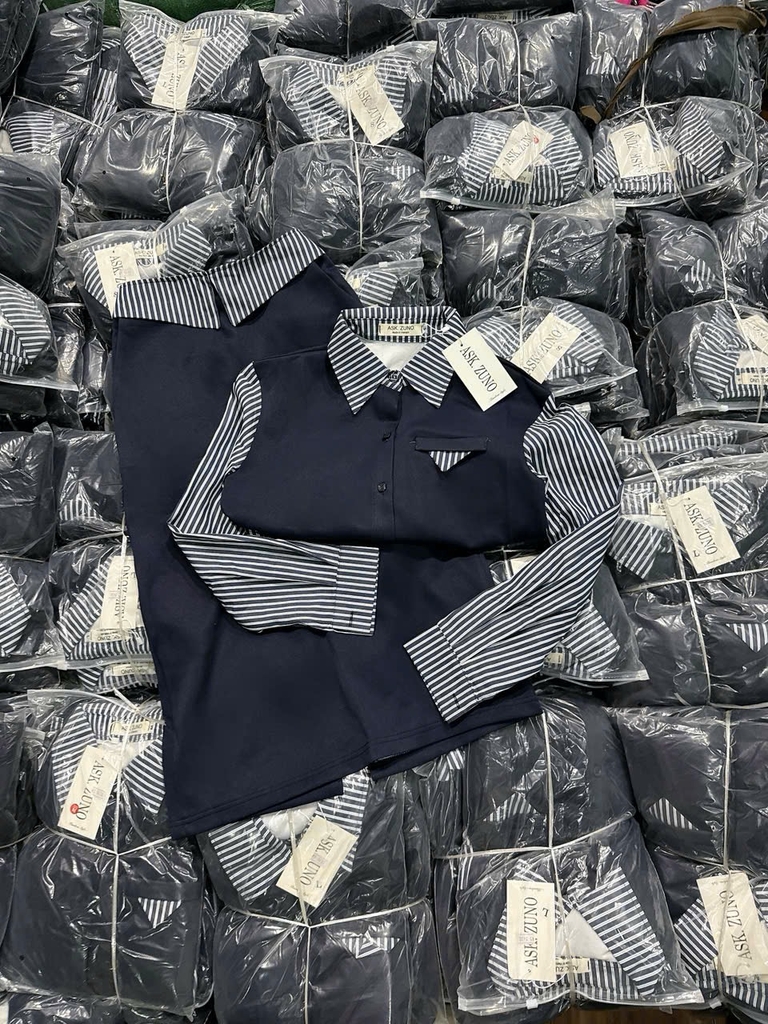Đánh giá Set798-Set công sở xanh than phối kẻ vải umi