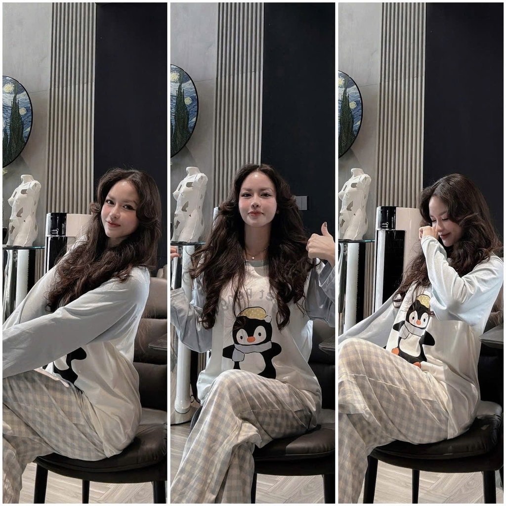 Đánh giá Set81- Set mặc nhà áo cotton chim cánh cụt phối quần suông kẻ