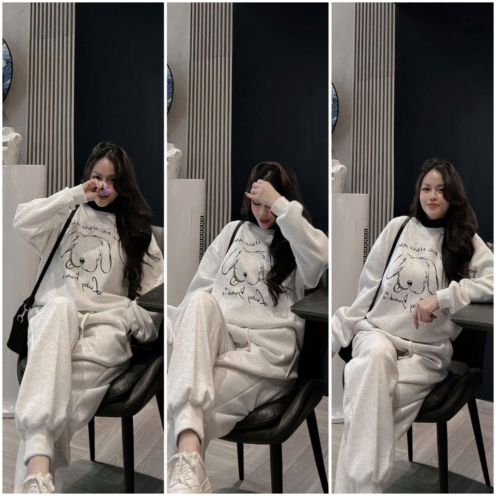 Set810- Bộ mặc nhà áo nỉ hai da phối qq