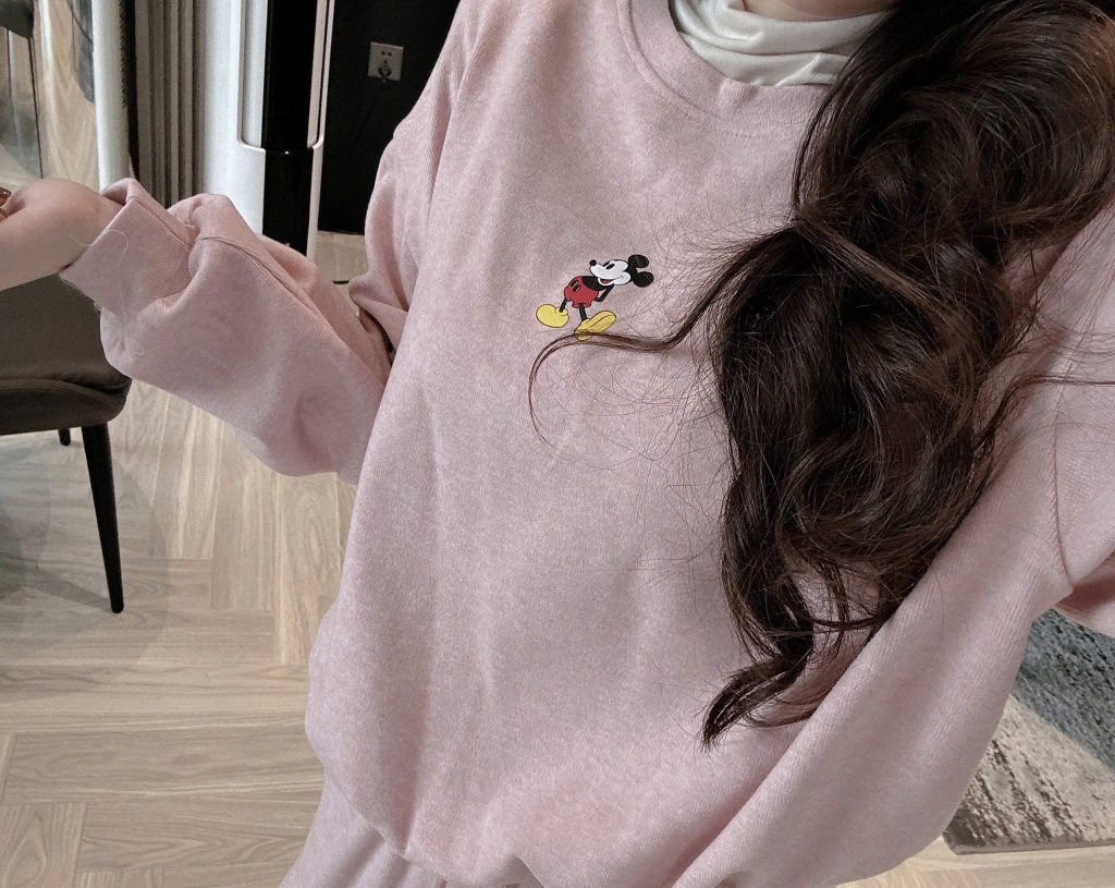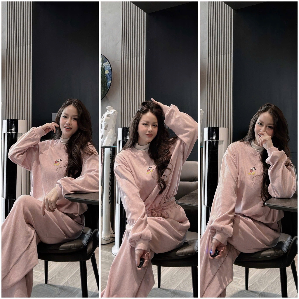 Đánh giá SET811- Bộ mặc nhà áo nỉ díp lông màu hồng phối quần suông