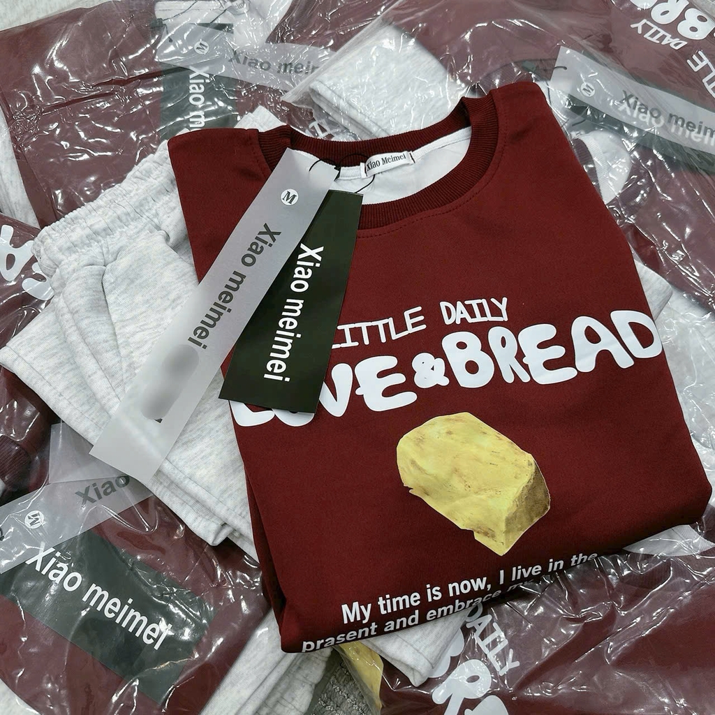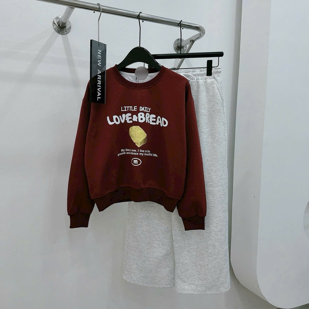 Set855- Bộ nỉ xám in chữ SLOW quần suông