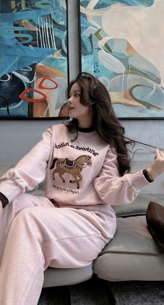Đánh giá Set836- Set nỉ lông thỏ màu hồng phối viền đen hình ngựa