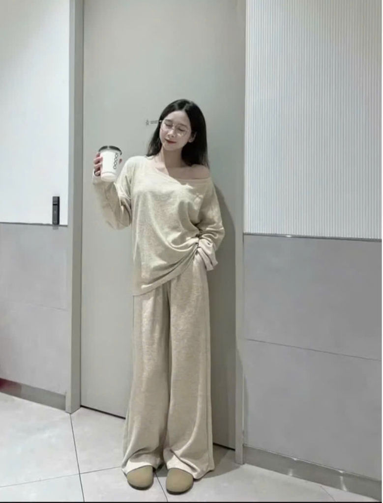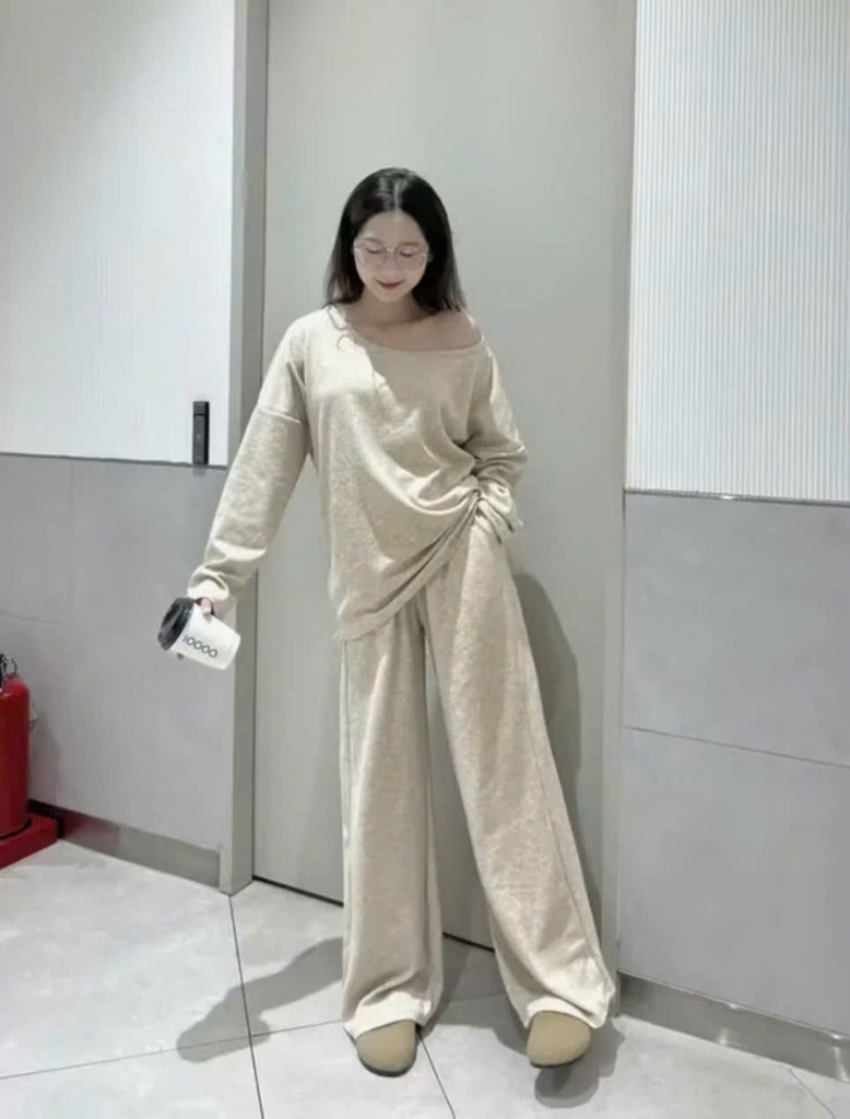 Đánh giá Set839- Bộ nỉ díp lông áo lệch mai phối quần suông be
