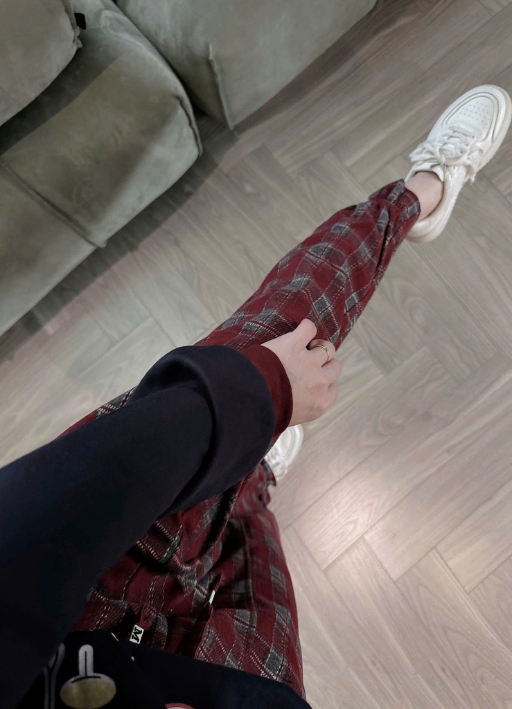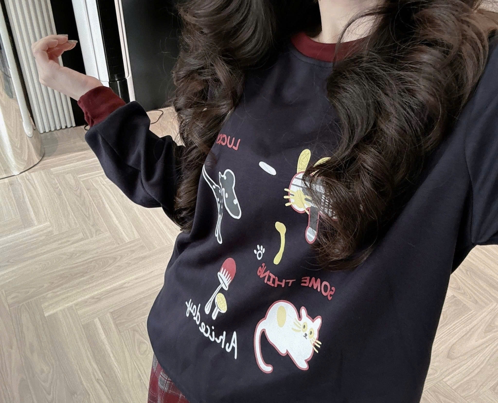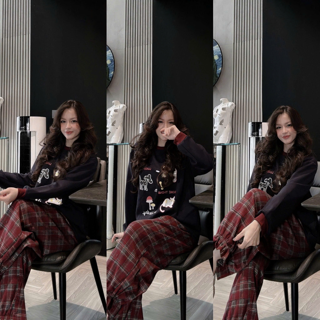 Set840- Bộ nỉ haida đen phối quần dạ kẻ suông