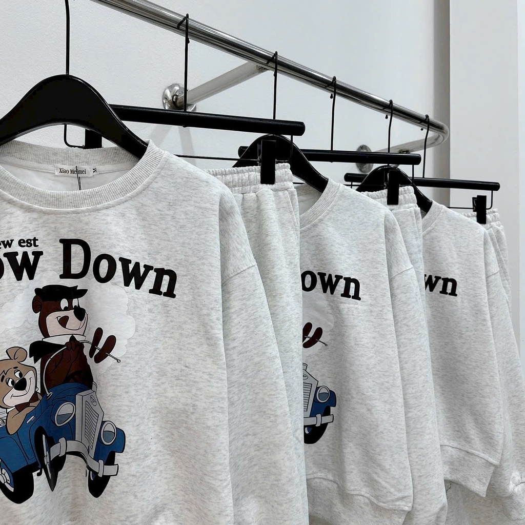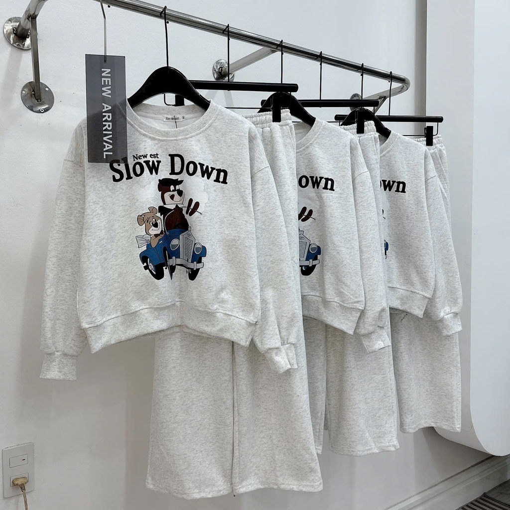 Set855- Bộ nỉ xám in chữ SLOW quần suông