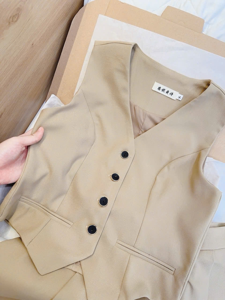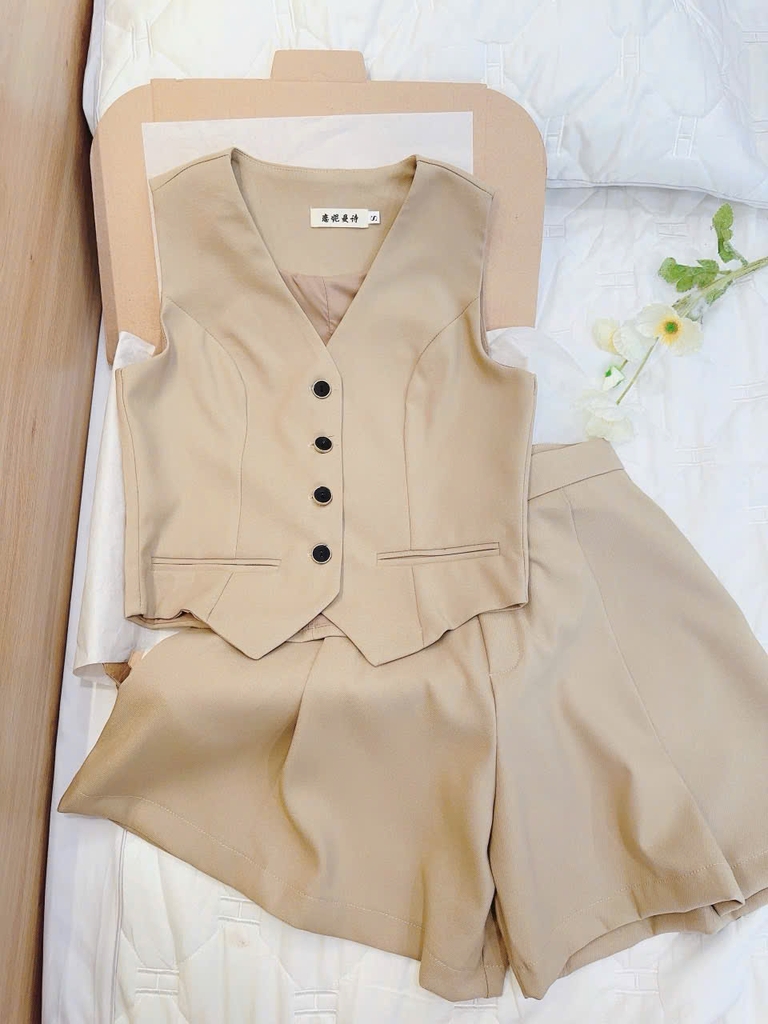 Đánh giá Set869-Set áo gile nâu sát nách phối quần váy vải chéo thái mềm mại
