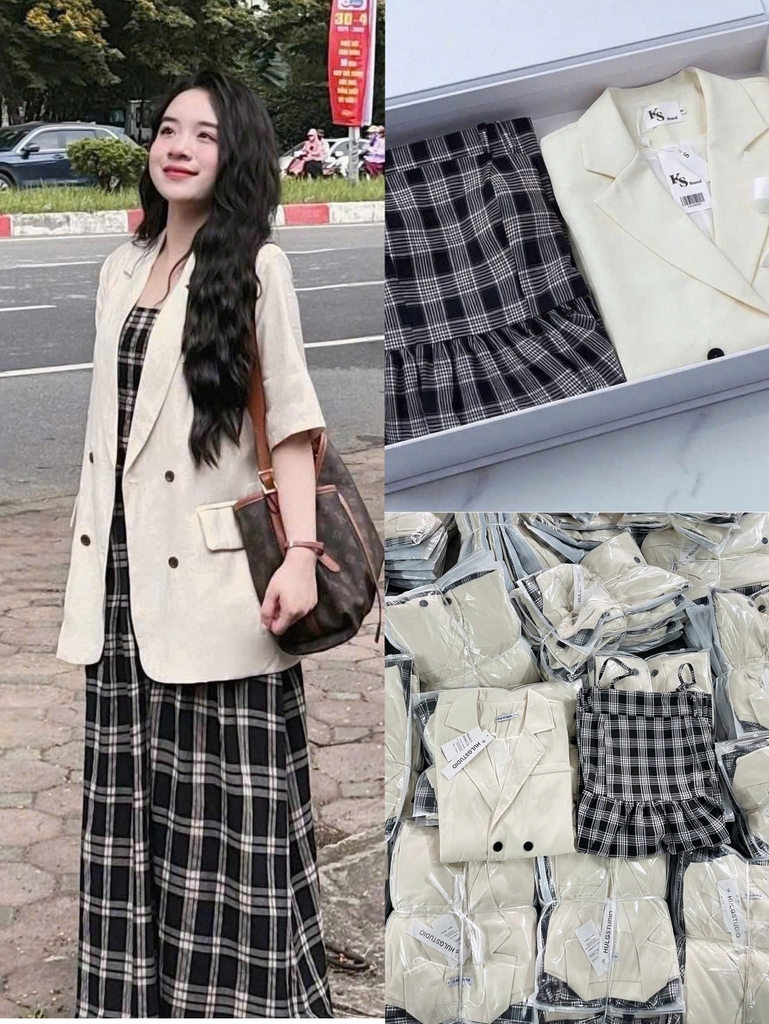 SET926-SET áo vest be mix ĐẦM MAXI dây kẻ nâu
