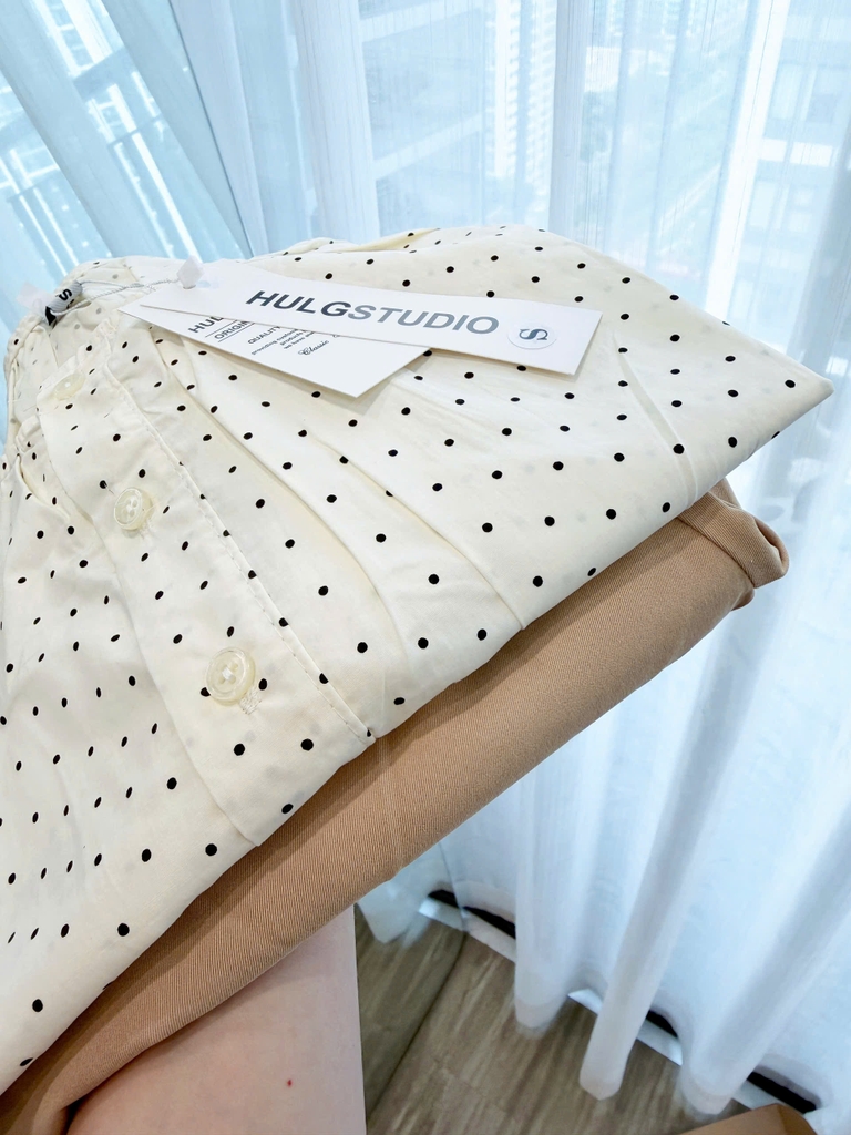 Đánh giá SET927-Set áo voan màu be chấm bi mix quần short kaki