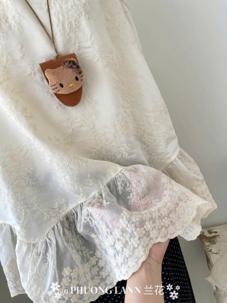 A583-Áo thun tay lỡ màu be hình mèo hàng nhà máy đủ tem