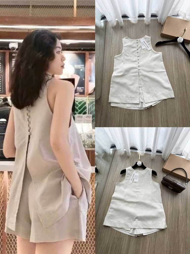 SET952-SET LIEN màu be cúc lưng dáng cộc