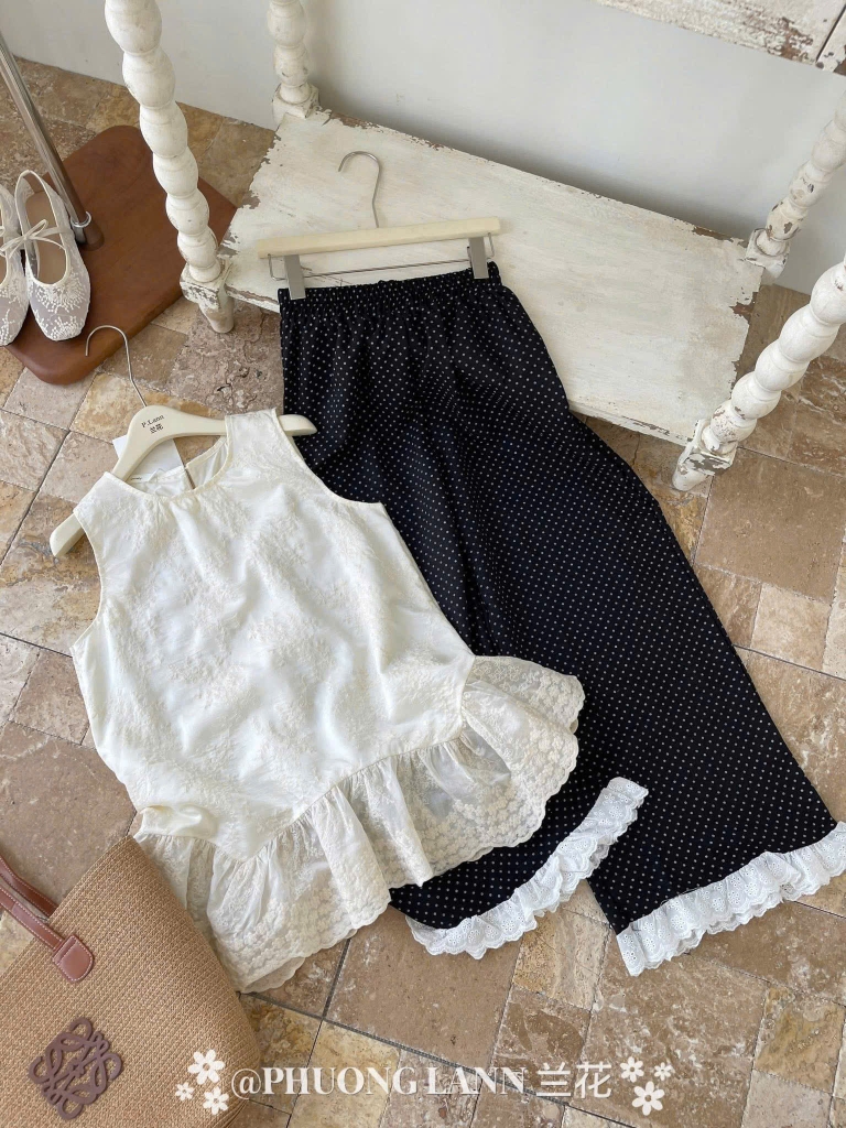 Đánh giá SET953-Set áo ren be mix quần suông bi đen chân ren
