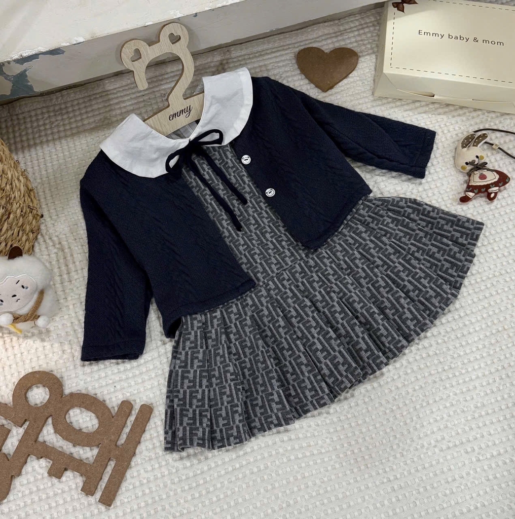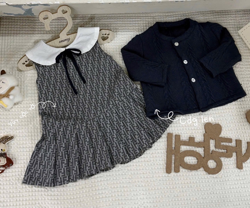 Setkid03- Set áo than mix đầm kẻ zic zắc bé gái hàng thiết kế
