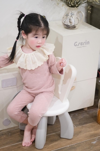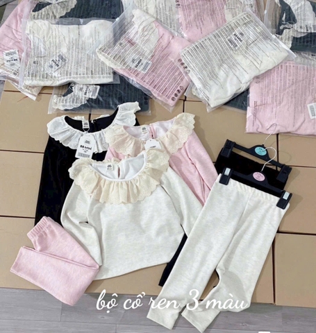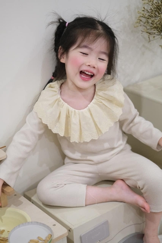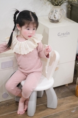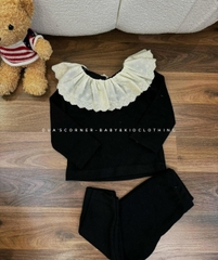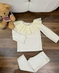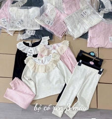 Setkid06-Set áo len cotton mỏng cổ bèo 3 màu cho bé gái